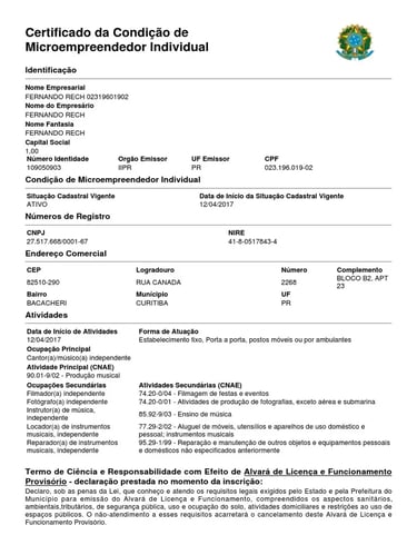 CCMEI (Certificado de Condição de Microempreendedor Individual), que funciona como o documento oficial da sua empresa, comprovando que ela está registrada e ativa.